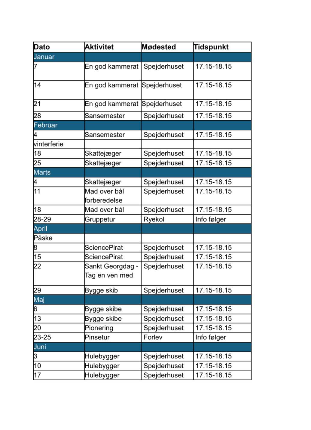 Du finder aktuelt program til højre under Filer.